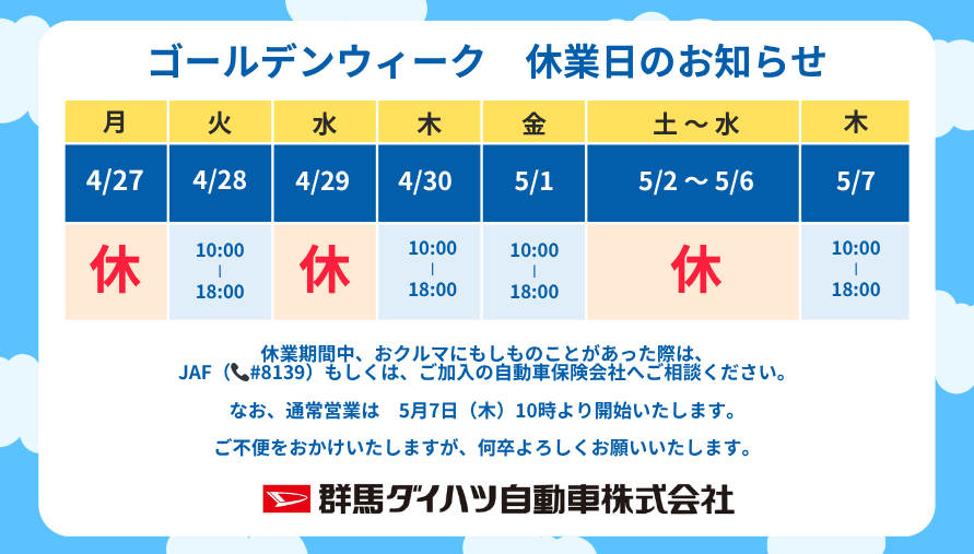 ※休業日は店舗により異なる場合がございます。