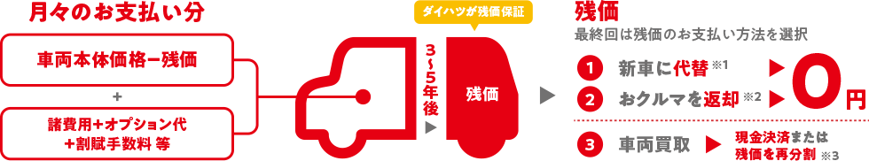 車両本体価格の一部を、最終回分のお支払い額として据え置くことで、