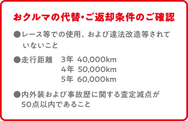 ●設定残価は、車両状態が規定内である場合のみ保証いたします。●ご購入いただいた販売会社に車両をご返却の上、新車にお乗り換えの場合(※1)、およびご購入いただいた販売会社にご返却の場合(※2)、残価分のお支払いは不要ですが、車両状態が事前に定められた規定外である場合には、別途精算金をいただきます。●最終回でお買い上げ(現金決済・再分割)をご選択された場合、最終回のお支払額(残価)を含めたお支払合計額は、一般的なローンの方が軽くなる場合があります。●お買い上げの際に再分割も選択できます(※3)、その際には、別途条件があります。詳しくは販売会社スタッフにお問い合わせください。●お支払いについてはこの他に様々なプランを設定できます。詳しくは販売会社スタッフにお問合わせください。