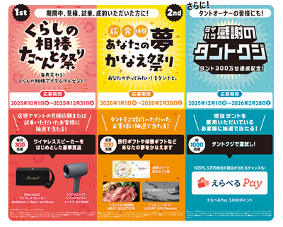 ■キャンペーン期間中にタントシリーズ(タント・タントカスタム・タントファンクロス・タントエグゼ・タントエグゼカスタム)を保有の方が対象です。(応募には車検証に記載の情報が必要となります。)