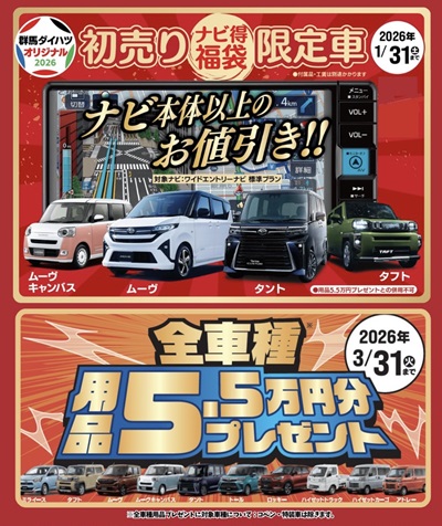 群馬ダイハツだけの限定車を1/31(土)までの1か月間限定でご用意!