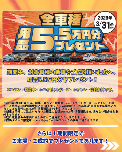 既にご成約いただいた車両にさかのぼって適用することはできません。