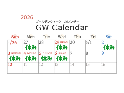 GW期間中の営業日のご案内を