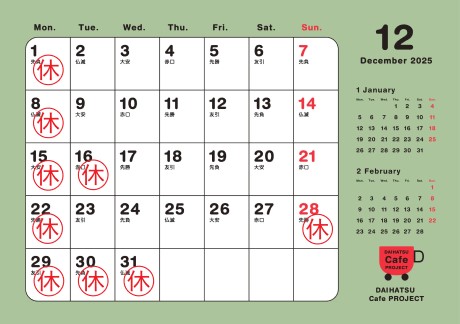 そして、12月28日(日)~1月3日(土)まで年末年始の長期休暇になります🙇