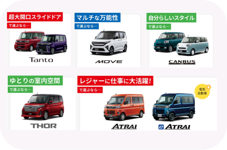ダイハツではレジャーから普段のお買い物に便利なスライドドアの車を豊富に取り扱っております!