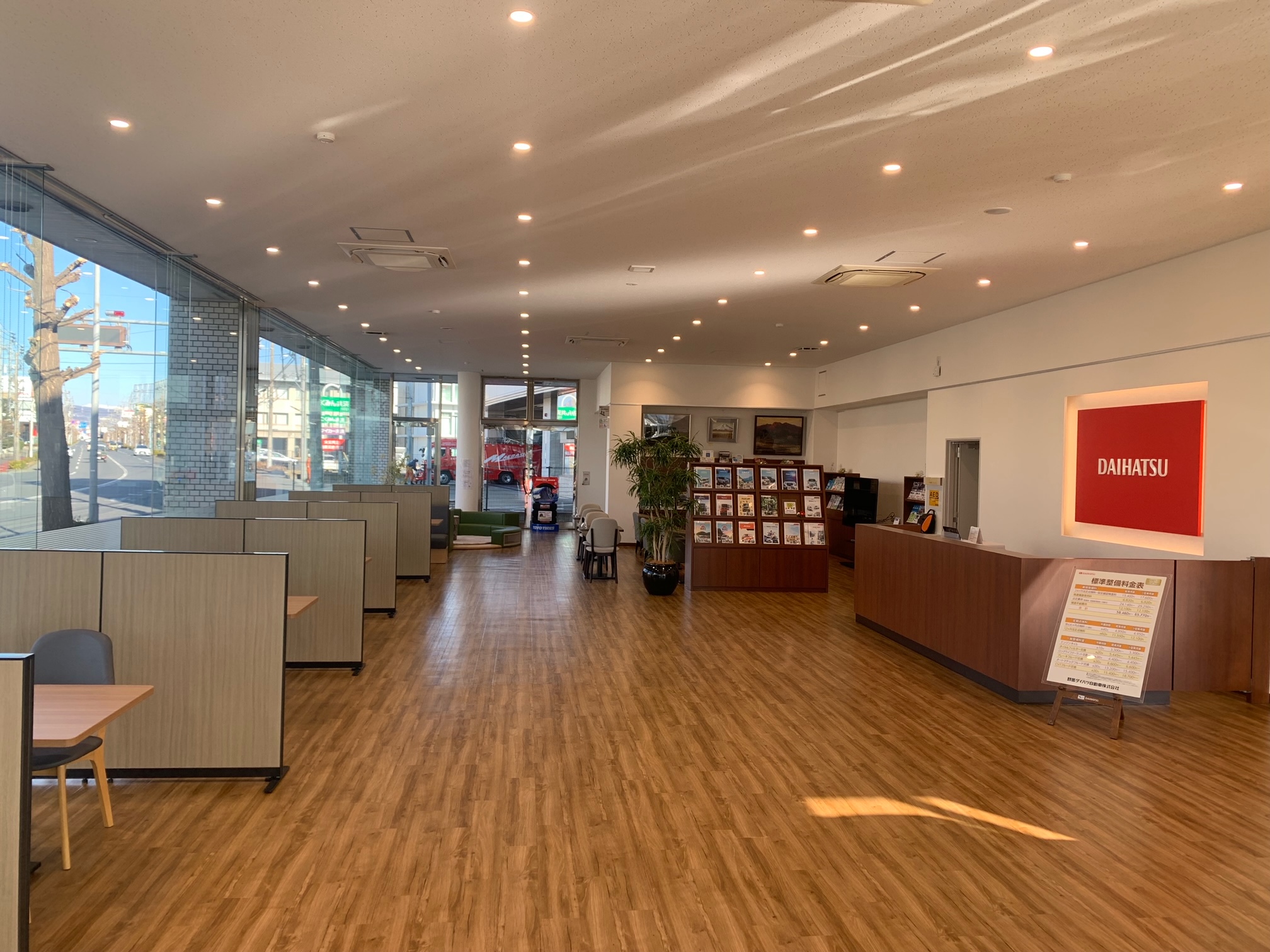 前橋産業道路沿いに面しており、西消防署の隣にあり問屋町交差点の角にございます。2020年5月に展示場が拡大され、西側出入口が広くなり南側にも出入口が出来ました。広いショールームでご商談や整備でお待ち頂いている際もゆっくりとおくつろぎ頂けます。また、試乗車や中古車展示場もございますので、お気軽にご来店下さい。