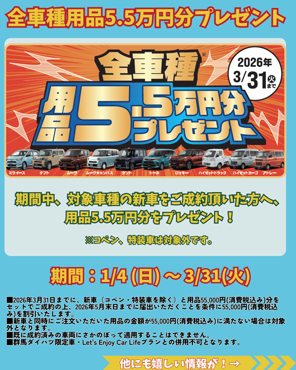ダイハツは4日より大初売りフェアを絶賛開催中!!