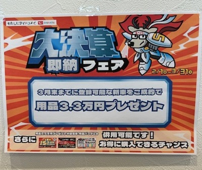 なんと3月末までに登録可能な新車をご成約で用品3.3万円プレゼント!