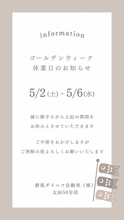 ゴールデンウィーク中は下記の通り