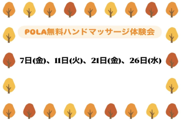 また、POLA様の無料ハンドマッサージ体験会の日程は