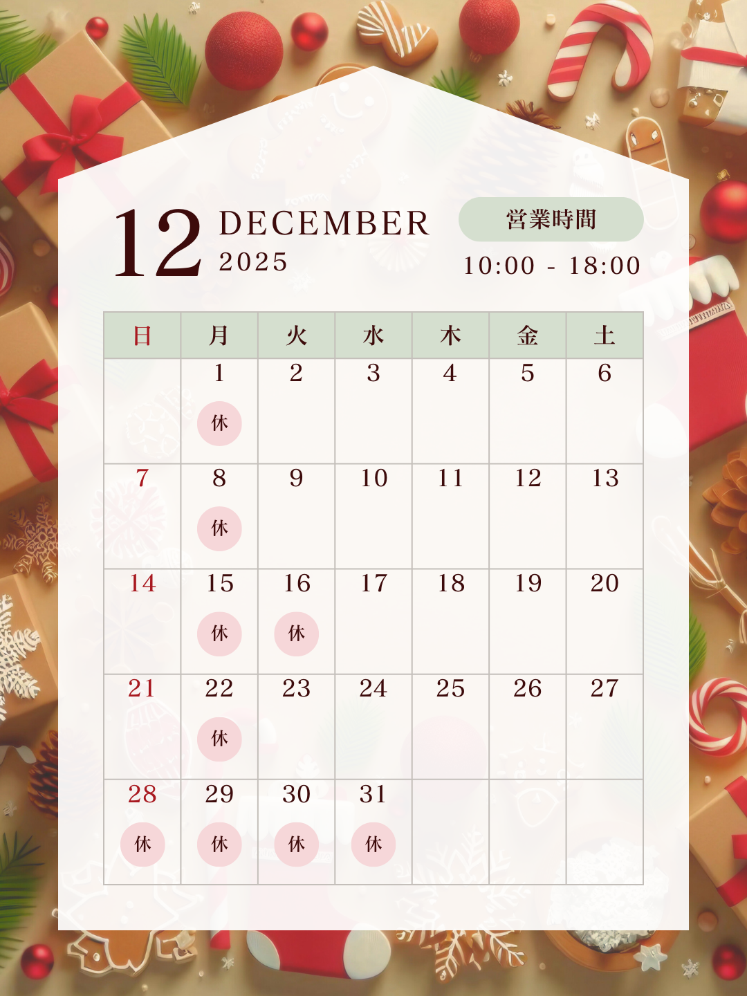 その他に12月28日~1月3日まで年末年始のお休みをいただいています🎍