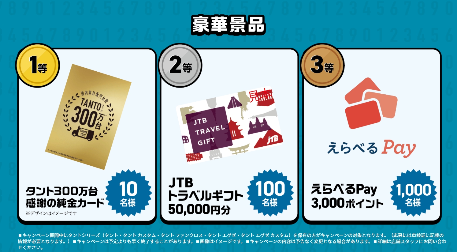 現在タントを保有されているお客様に、抽選で豪華ノベルティをプレゼントいたします🌟