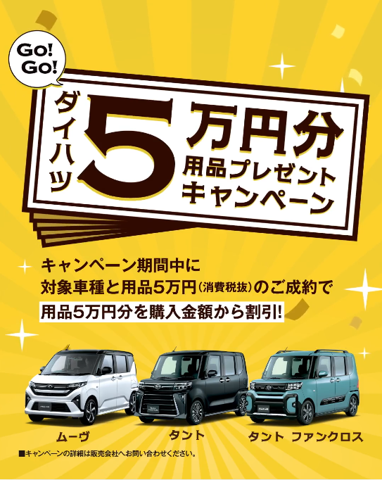 対象車種(ムーヴ・タント・タントファンクロス)と用品5万円分のご成約で
