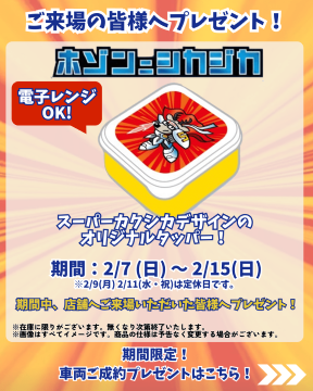 期間中にご来場で【ダイハツ限定オリジナルタッパー】をもれなくプレゼント🎁❗