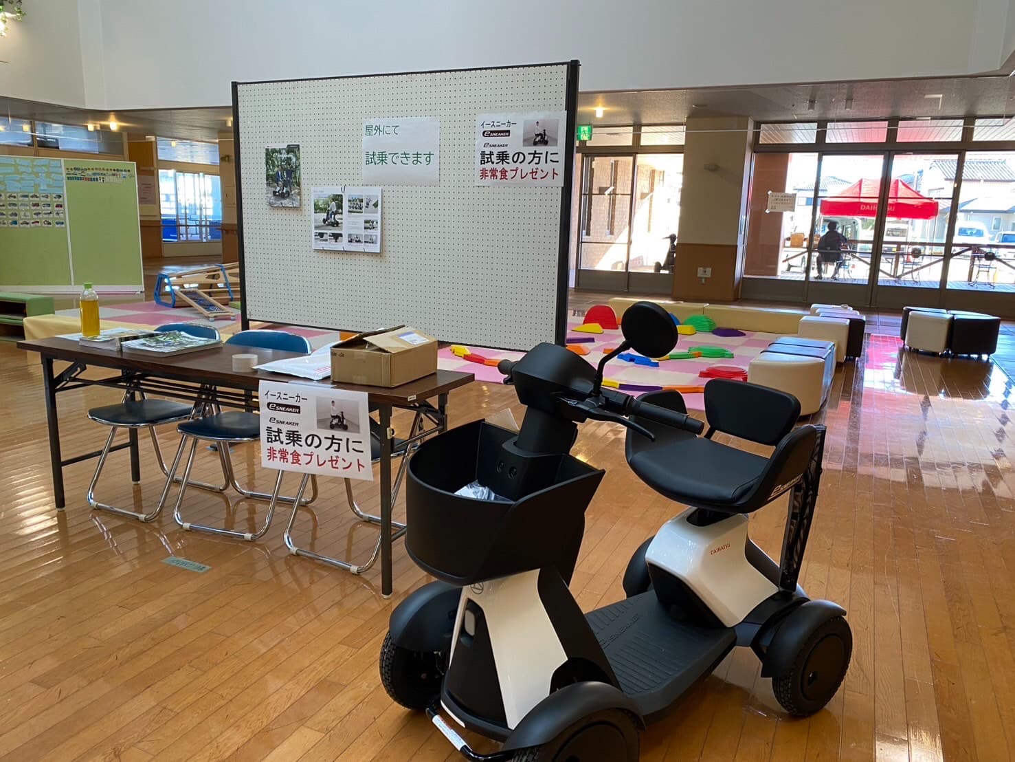 地域福祉活動の推進や、地域住民の健康増進、高齢者・障害者・子どもの支援を目的として、群馬ダイハツでは福祉車両・近距離モビリティの展示を行いました。