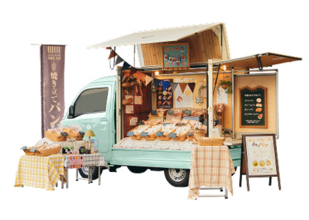 群馬ダイハツからは、電気自動車車や近距離モビリティ、移動販売車「Nibako」を展示します。
