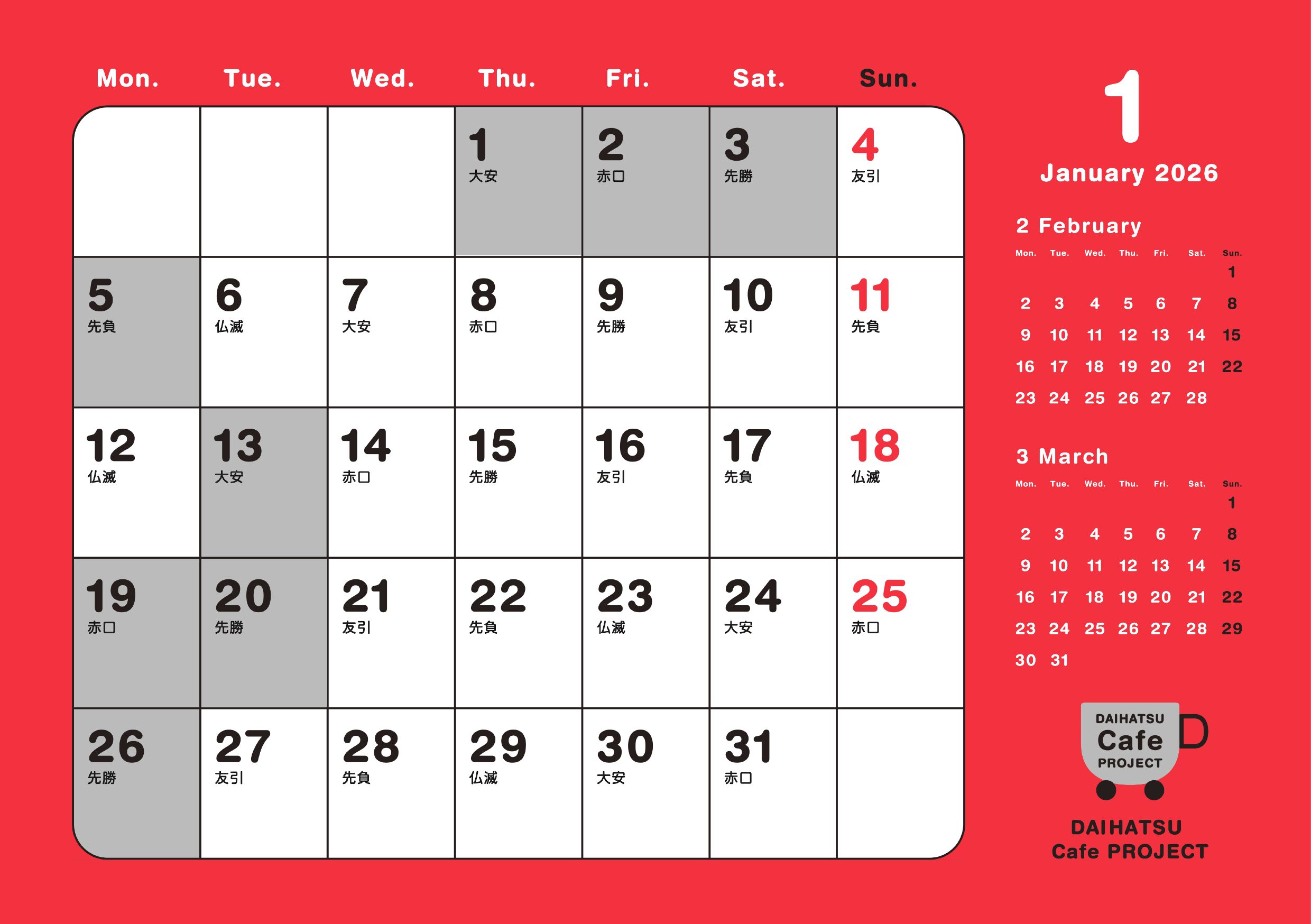 2026年1月の営業カレンダーのご案内📢